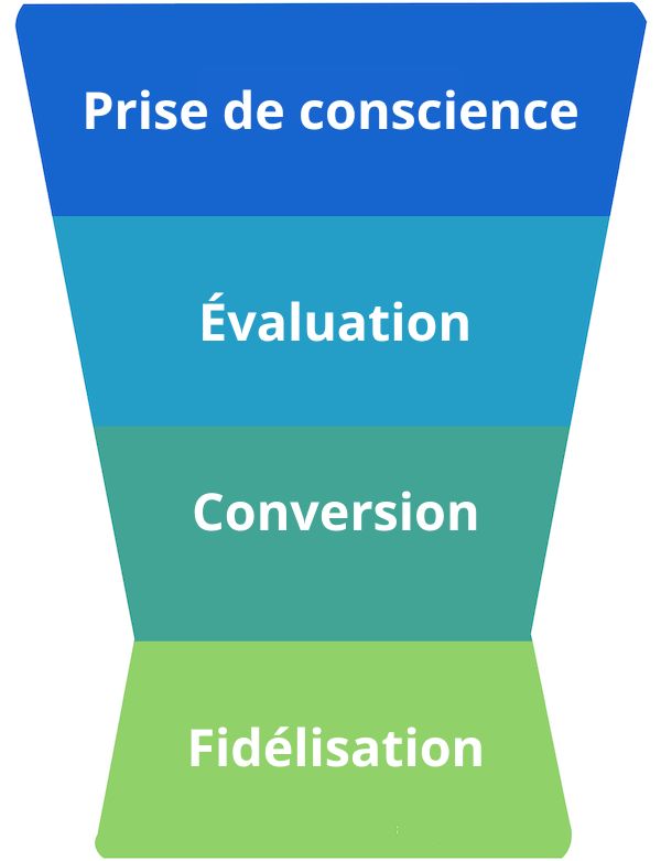 Il existe des milliards de façons différentes de nommer les étapes de le tunnel marketing, mais en général, elles sont les suivantes :